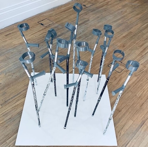 The project is about movement and how disability is viewed, by a vast majority. Also, importantly, how it has been handled within the institution. A collection of crutches with statements on the back are to raise attention to what has been said and documented; and turning something from a negative into something that can be used as a positive.
